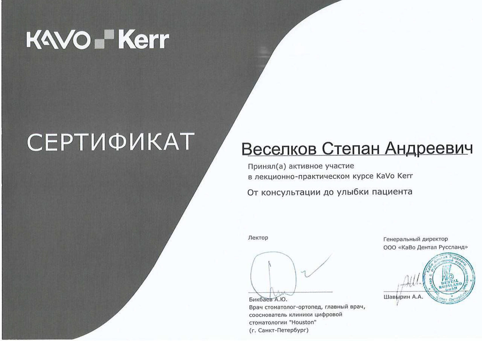 Веселков Степан Андреевич работает в области стоматологической ортопедии, успешно оказывая услуги по лечению заболеваний полости рта. В его компетенцию входит зубопротезирование, а также прочие подобные процедуры.