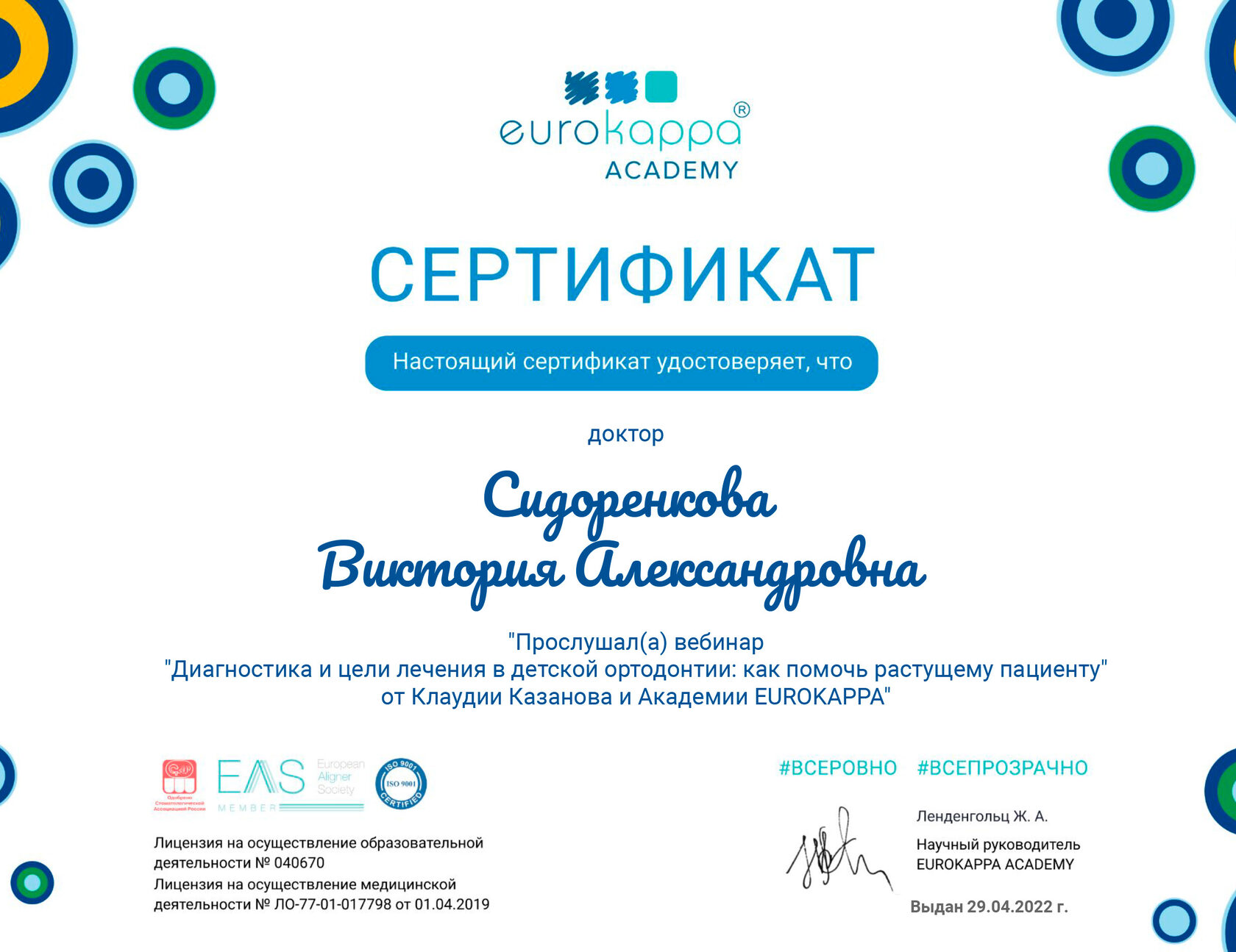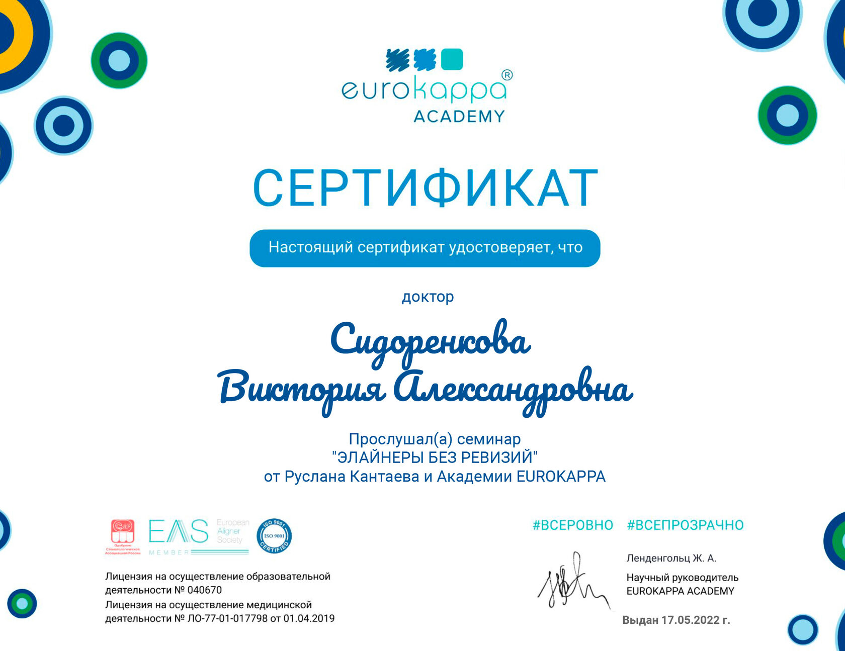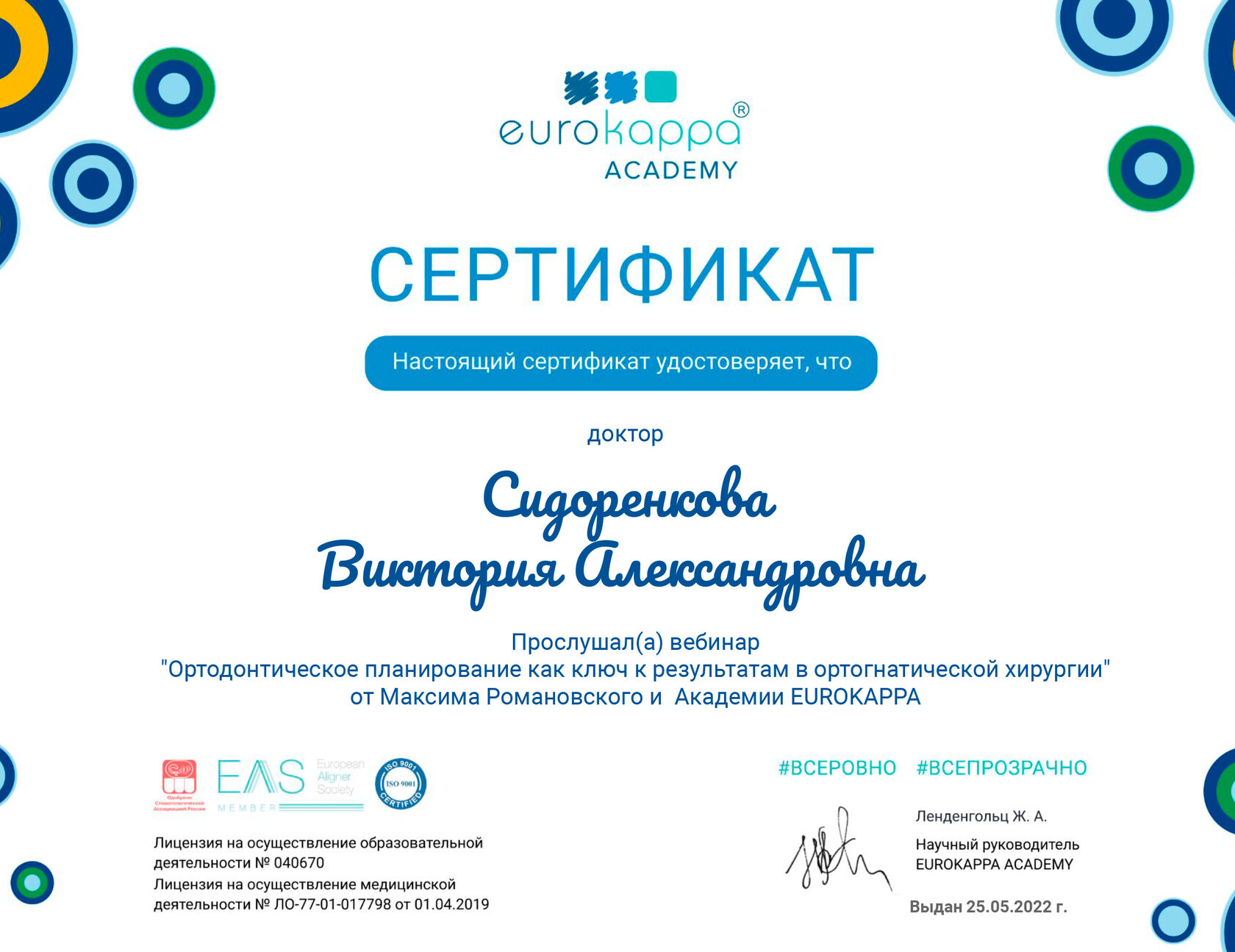 Ношение элайнеров по 20 – 22 часов в сутки